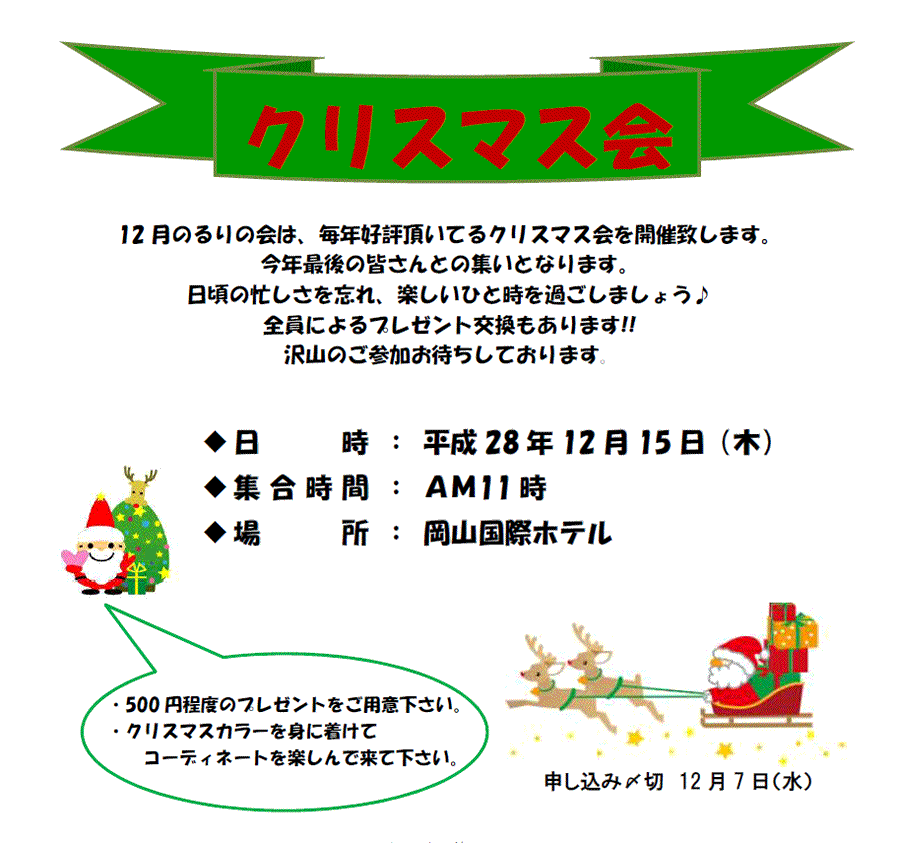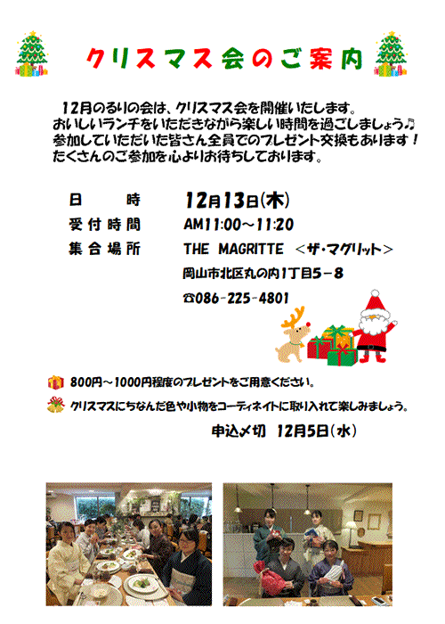写真は昨年12月に行った『るりの会 クリスマス会』の様子です。