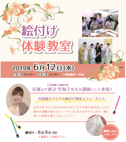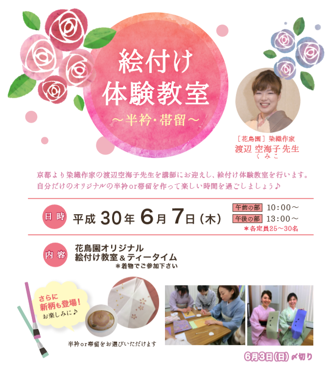 今回も染織作家の渡辺空海子先生を講師にお迎えし、絵付教室を行います。