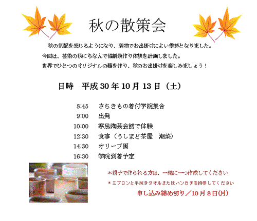 写真は昨年10月に行った『秋の散策会 陶芸体験』の様子です。