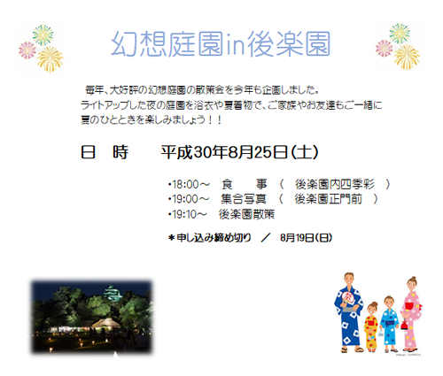 8月の催し 岡山後楽園 幻想庭園散策会のお知らせ