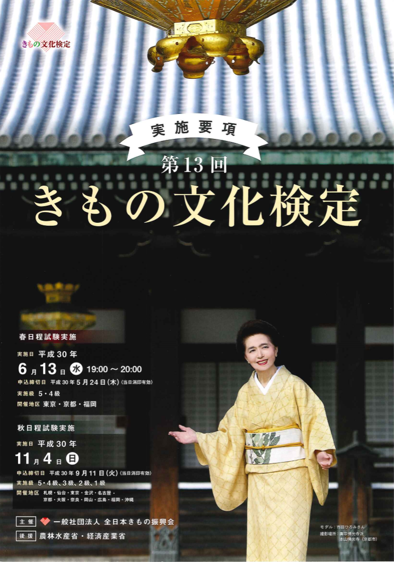 下記日程で、第10回「きもの文化検定」が実施されます。