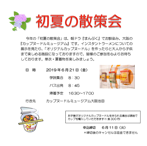 写真は2020年6月に行った『カップヌードルミュージアム』の様子です。