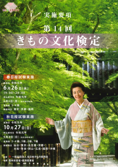 下記日程で、第14回「きもの文化検定 秋日程試験」が実施されます。